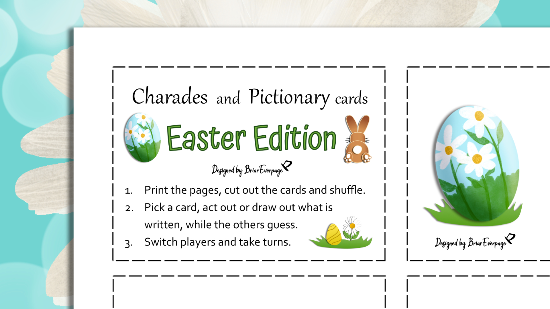 These cards are themed with Easter-related arts, words and phrases. Instructions on how to play are included in a card.