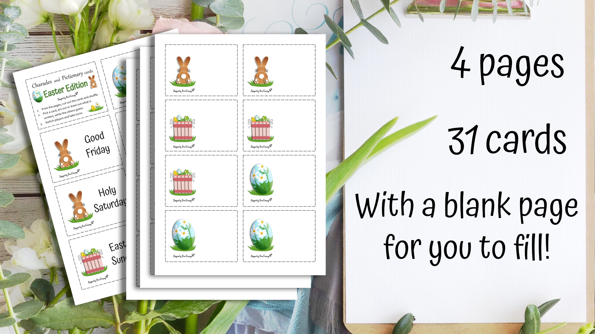 Charades and Pictionary PRINTABLE cards - Easter edition